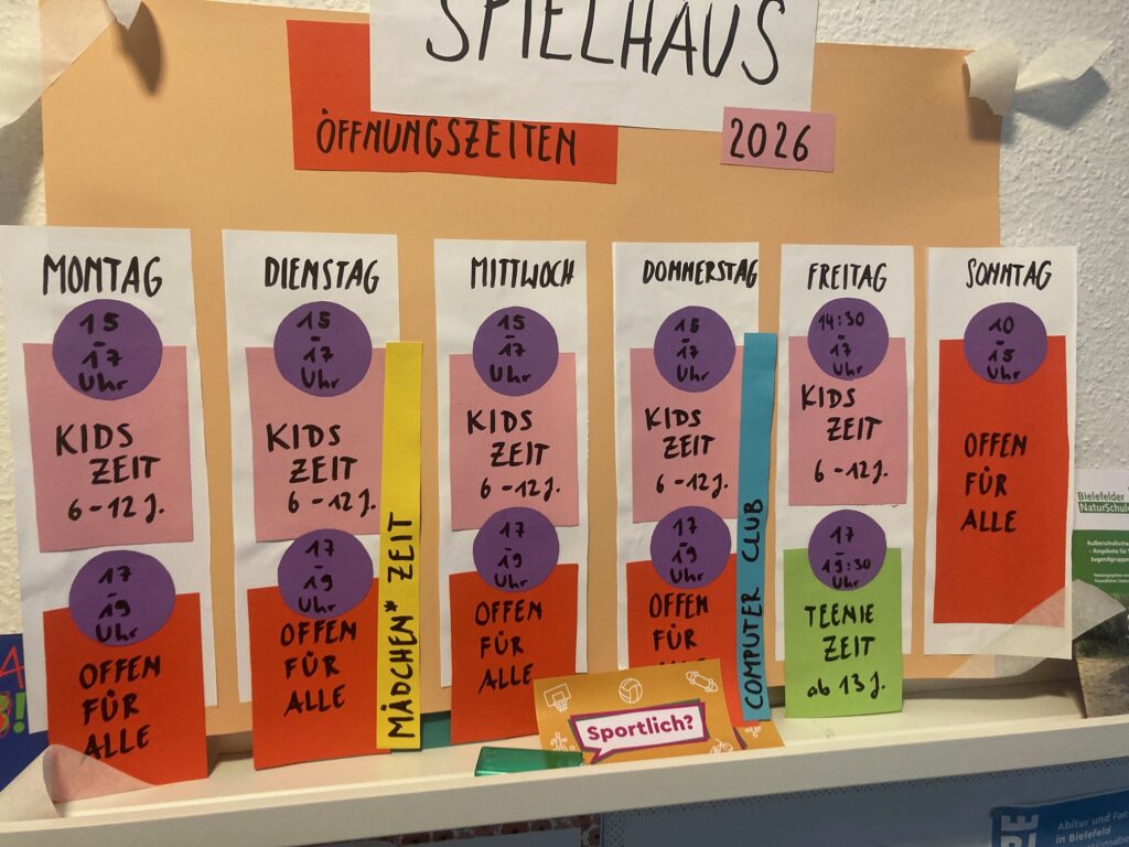 Beachtet auch unsere neuen Zeiten für Kinder bis 12 Jahren und für Teenies ab 13 Jahren: Montag bis Donnerstag von 15 – 17 Uhr ist das Spielhaus nur für die jüngeren geöffnet. Freitag ist das Haus ab 17 Uhr exklusiv für Teens ab 13 Jahren offen. Zu allen anderen Zeiten ist das Spielhaus für alle Altersgruppen geöffnet.